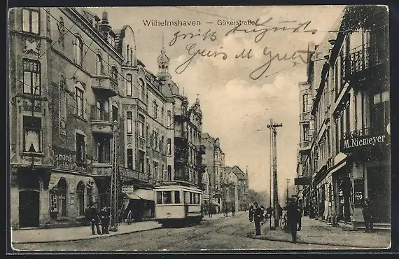 AK Wilhelmshaven, Strassenbahn in der Gökerstrasse