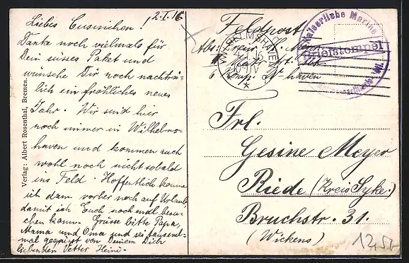 alte Ansichtskarte, gelaufen 1916, Eckknick re. unten, guter Zustand
