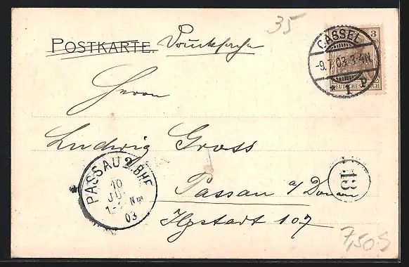 alte Ansichtskarte, gelaufen 1903, Stempelspur, guter Zustand