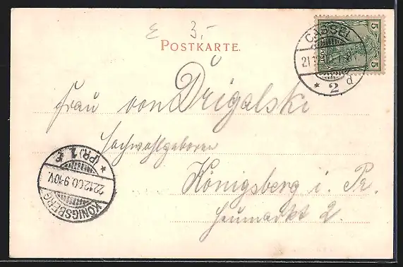 alte Ansichtskarte, gelaufen 1900, guter Zustand
