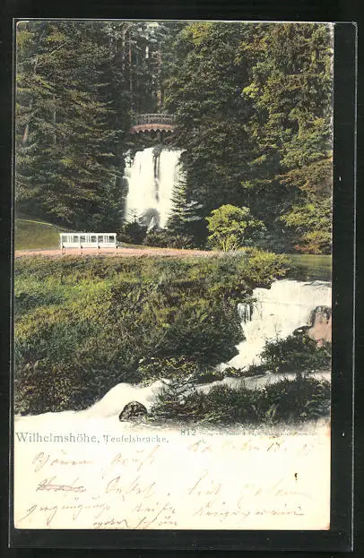 AK Wilhelmshöhe, Teufelsbrücke mit Wasserfall