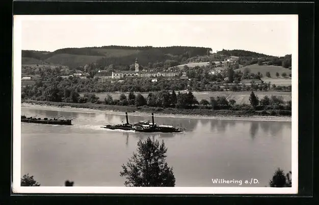 AK Wilhering a. D., Ortsansicht mit Dampfer
