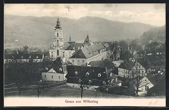 AK Wilhering an der Donau, Ortsansicht aus der Vogelschau
