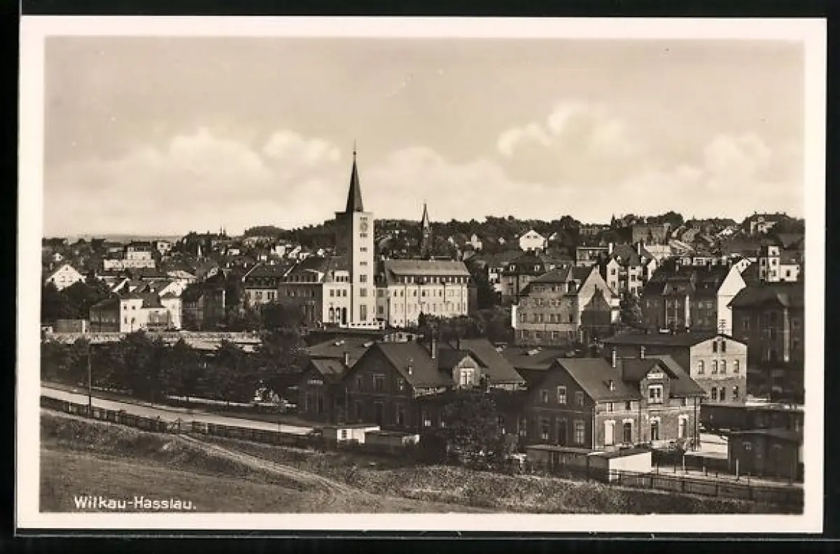 AK Wilkau-Hasslau, Stadtansicht mit Kirche
