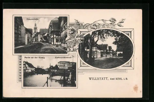 AK Willstätt, Partie an der Kinzig u. Elektrizitätswerk, Hauptstrasse, Mehrfachansicht