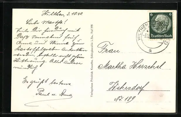 alte Ansichtskarte, gelaufen 1940, guter Zustand