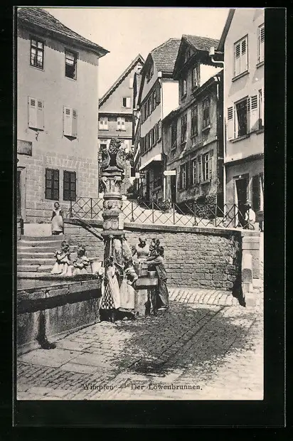 AK Wimpfen, Der Löwenbrunnen mit Kindern