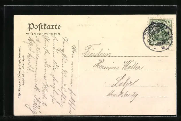 alte Ansichtskarte, gelaufen 1907, Stempelspur, guter Zustand