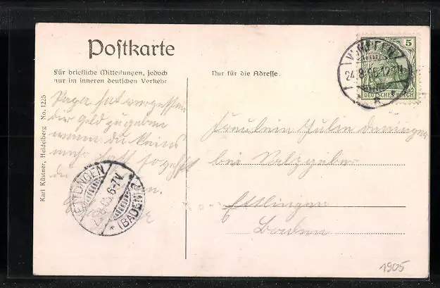alte Ansichtskarte, gelaufen 1905, Stempelspur, guter Zustand