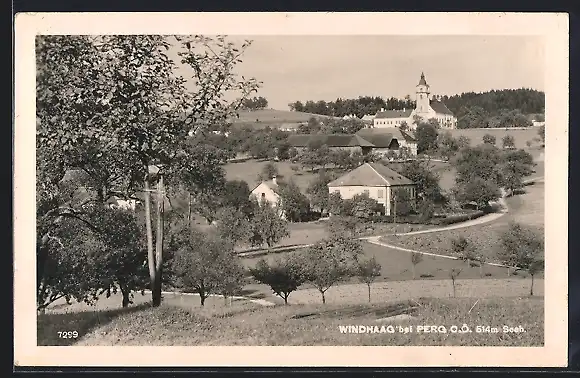 AK Windhaag bei Perg, Ortspartie mit Kirche