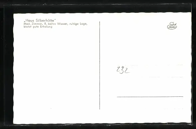 Personenbezogene Daten auf der Rückseite der Karte wurden durch blauen Textmarker unkenntlich gemacht. Die blauen Stellen sind auf die Vorderseite durchgeweicht und wirken sich negativ auf das Postkartenfoto aus
