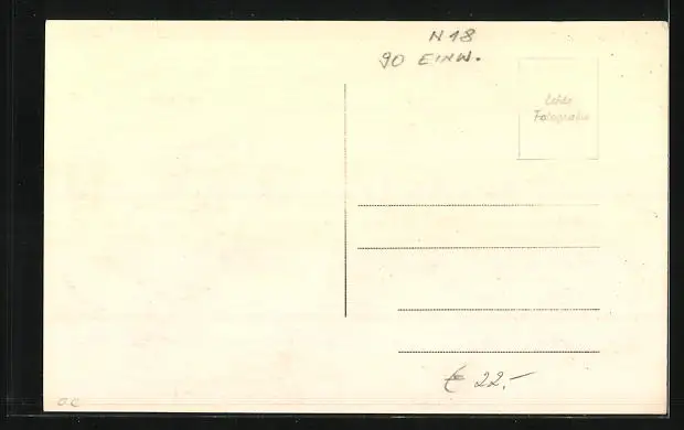 Personenbezogene Daten auf der Rückseite der Karte wurden durch blauen Textmarker unkenntlich gemacht. Die blauen Stellen sind auf die Vorderseite durchgeweicht und wirken sich negativ auf das Postkartenfoto aus