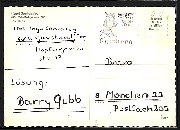alte Ansichtskarte, gelaufen, Briefmarke entfernt, guter Zustand