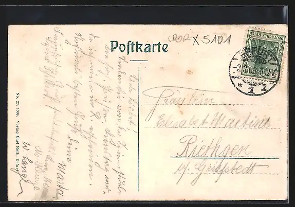 alte Ansichtskarte, gelaufen 1908, guter Zustand