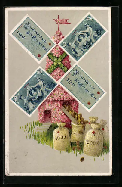 AK Windmühle mit Geldscheinen, Geld