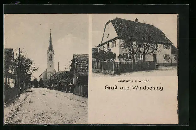 AK Windschläg, Gasthaus zum Anker, Strassenpartie mit Kirche