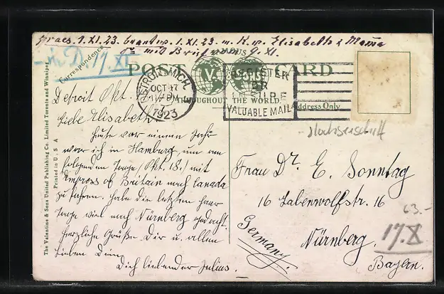 alte Ansichtskarte, gelaufen 1923, Briefmarke entfernt, Eckknicke re. oben und li. unten, guter Zustand