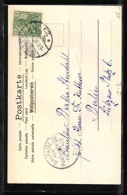 alte Ansichtskarte, gelaufen 1900, guter Zustand