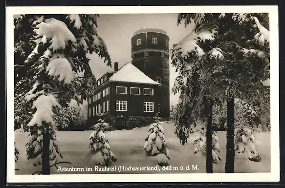 AK Winterberg /Westf., Astenturm im Rauhreif