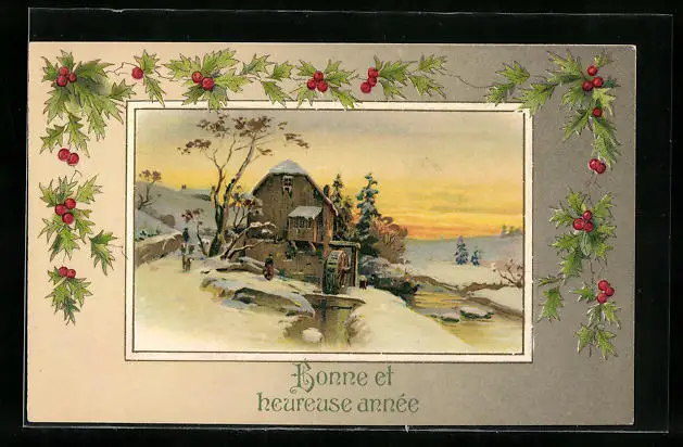 AK Winterlandschaft in Abendstimmung zu Neujahr