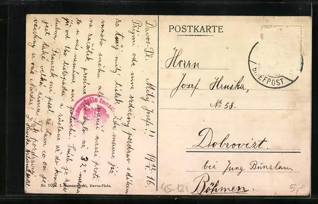 gelaufen 1916, Briefmarke entfernt, rückseitig Oberflächenschaden, guter Zustand