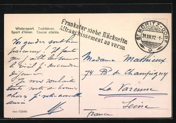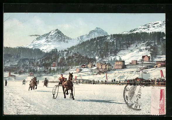 AK Wintersport mit Pferdeschlitten in den Bergen