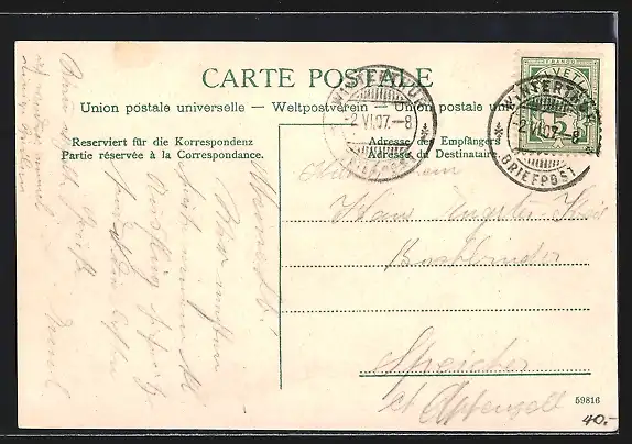 alte Ansichtskarte, gelaufen 1907, guter Zustand