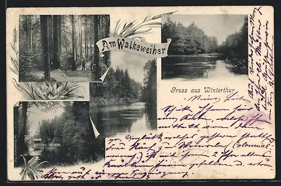 AK Winterthur, Brücke und Partie am Walkenweiher