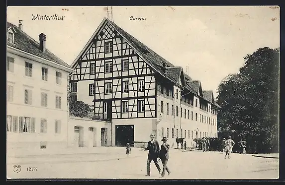 AK Winterthur, Caserne mit Strasse und Versammlung