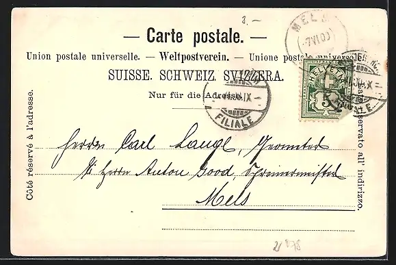 alte Ansichtskarte, gelaufen 1900, Eckknick li. oben, guter Zustand