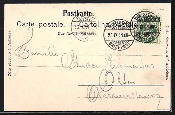 alte Ansichtskarte, gelaufen 1901, guter Zustand
