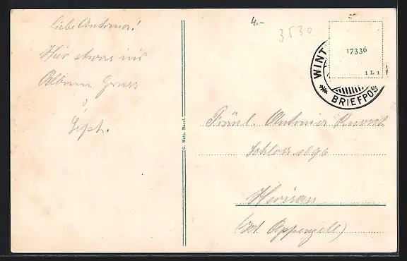 alte Ansichtskarte, gelaufen, Briefmarke entfernt, guter Zustand