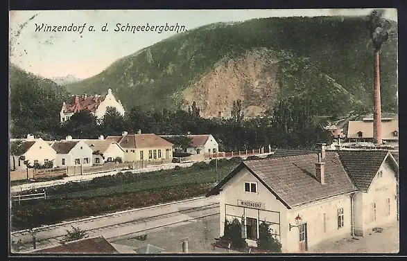 AK Winzendorf a. d. Schneebergbahn, Blick auf den Bahnhof