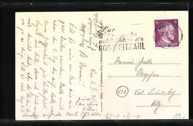 alte Ansichtskarte, gelaufen 1945, guter Zustand