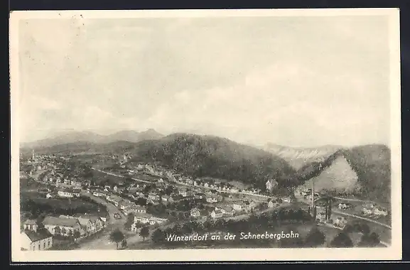 AK Winzendorf an der Schneebergbahn, Ortsansicht aus der Vogelschau