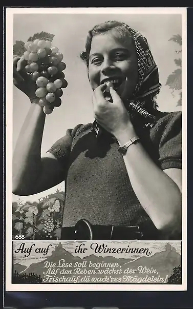 AK Winzerin mit Weintrauben