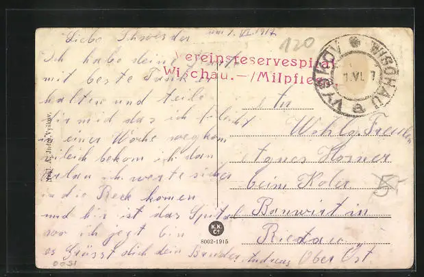 gelaufen 1917 als Feldpost, Bugspur oben mittig, guter Zustand