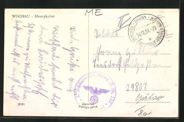 alte Ansichtskarte, gelaufen 1939 als Feldpost, Eckknick re. unten, guter Zustand