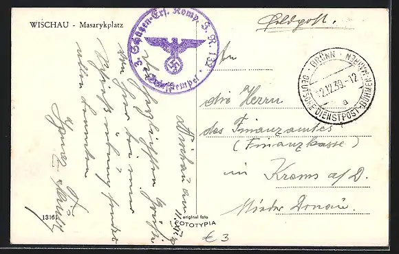 AK Wischau / Vyskov, Masarykplatz