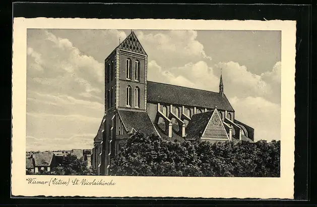 AK Wismar (Ostsee), St. Nicolaikirche mit Häusern