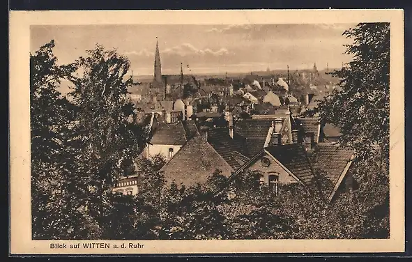 AK Witten a. d. Ruhr, Ortsansicht unmrahmt von Bäumen