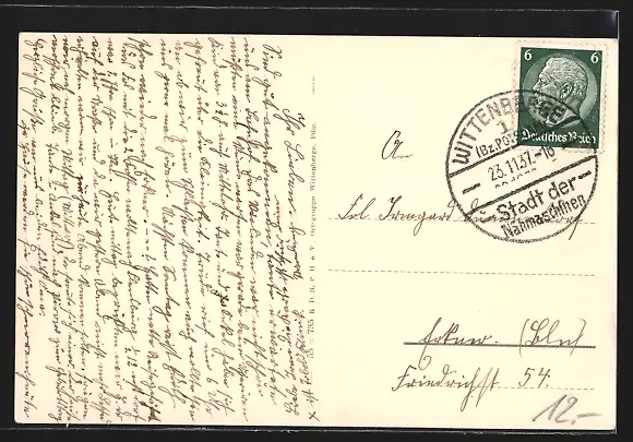 alte Ansichtskarte, gelaufen 1937, Bugspur li. unten, guter Zustand