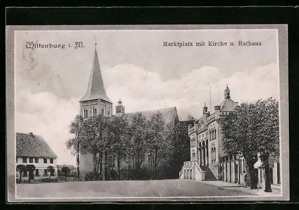 AK Wittenburg i. M., Marktplatz mit Kirche und Rathaus