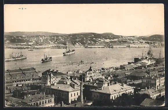 AK Wladiwostok, Ortsansicht mit Hafenpartie