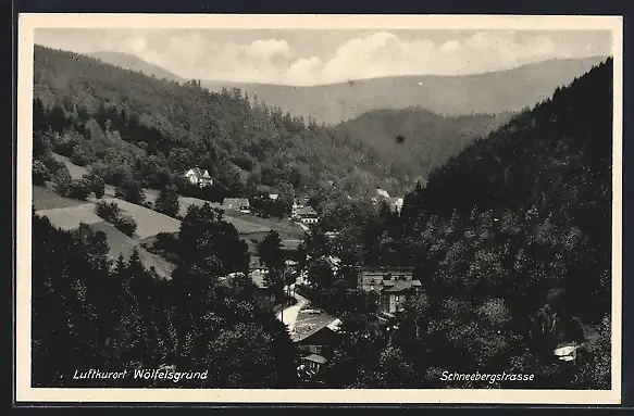 AK Wölfelsgrund, Schneebergstrasse aus der Vogelschau
