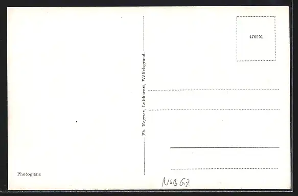 Personenbezogene Daten auf der Rückseite der Karte wurden durch blauen Textmarker unkenntlich gemacht. Die blauen Stellen sind auf die Vorderseite durchgeweicht und wirken sich negativ auf das Postkartenfoto aus