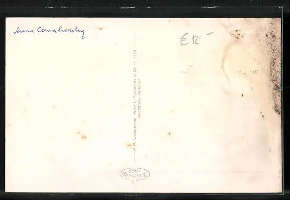 Personenbezogene Daten auf der Rückseite der Karte wurden durch blauen Textmarker unkenntlich gemacht. Die blauen Stellen sind auf die Vorderseite durchgeweicht und wirken sich negativ auf das Postkartenfoto aus