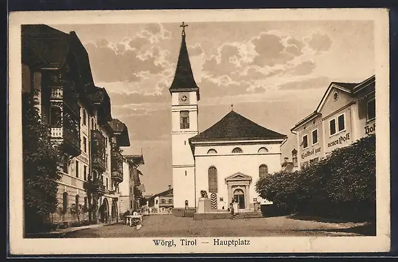 AK Wörgl, Gasthof zur neuen Post am Hauptplatz