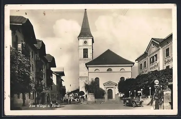 AK Wörgl, Strassenpartie mit Tankstelle und Gasthof zur neuen Post