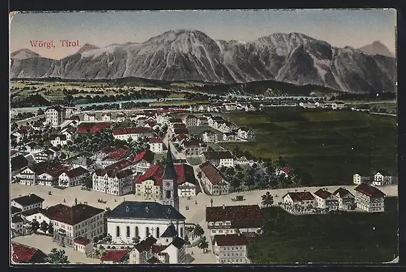AK Wörgl /Tirol, Teilansicht vor Bergpanorama